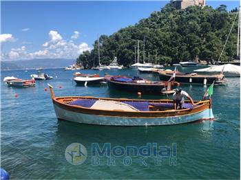 Gozzo ligure di 7,5 metri interamente in legno pregiato- fasciame in mogano, struttura in acacia e ponte con tavole in teak massiccio.